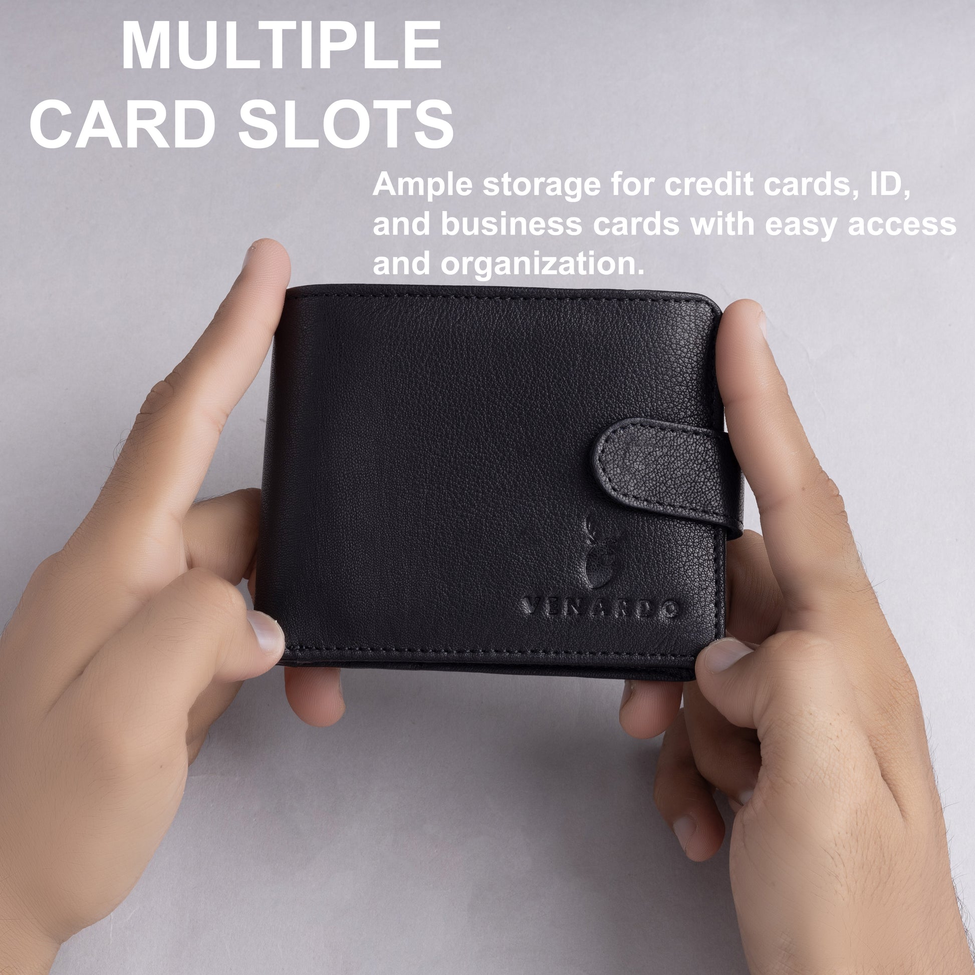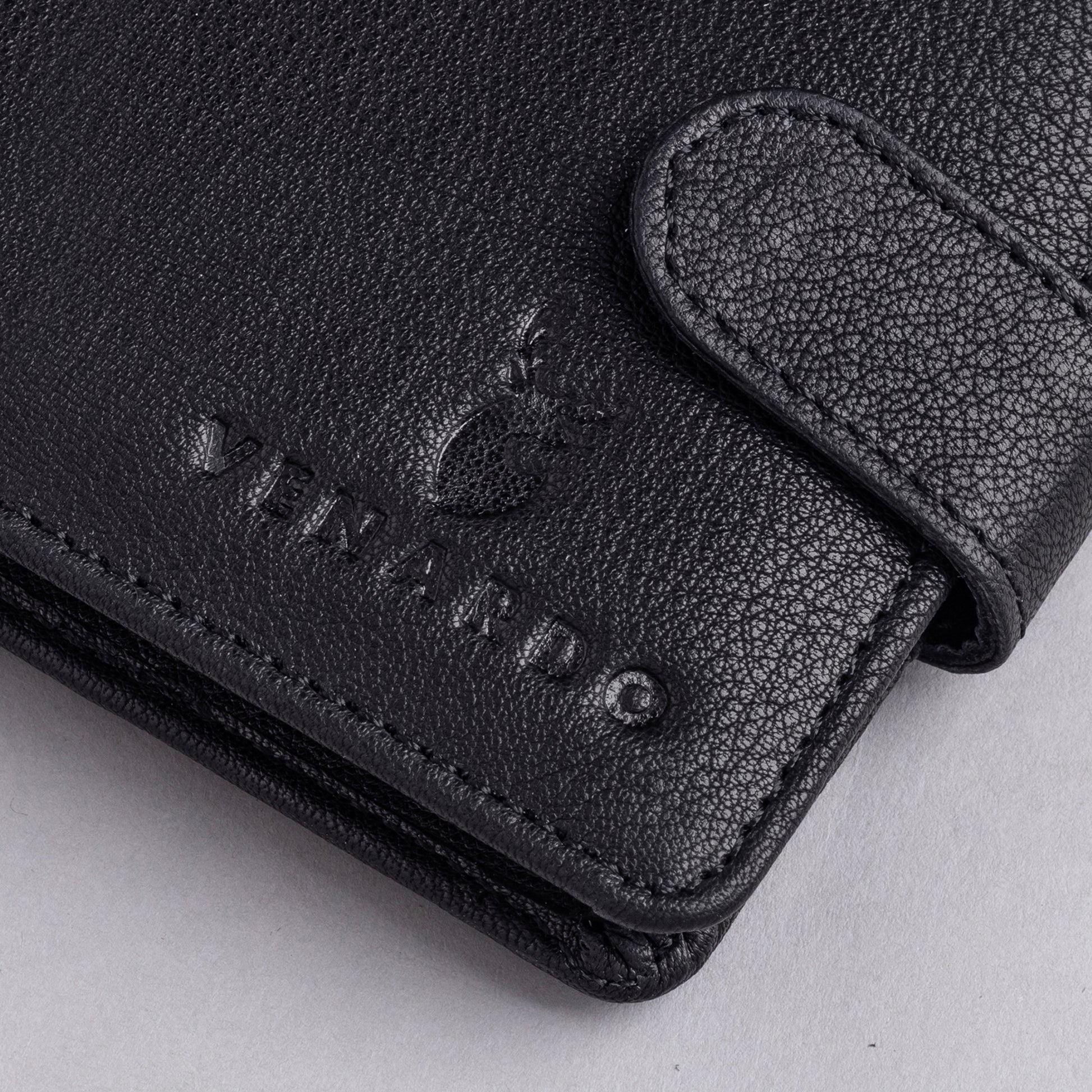 Elevate your accessory game with the Venardo textured black wallet. Crafted from high-quality leather, this sophisticated wallet is designed for the modern man. Its textured finish adds an elegant touch while providing durability for everyday use. With ample space for cards and cash, it seamlessly combines functionality with style. Discover the perfect blend of luxury and practicality that complements your casual style effortlessly.